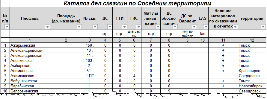 Напоминаем, что сведения скважинах и (или) площадях могут содержаться не только в делах скважин,